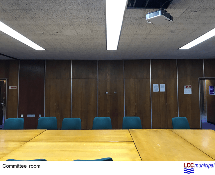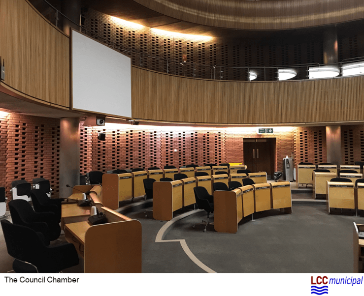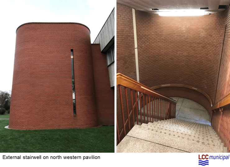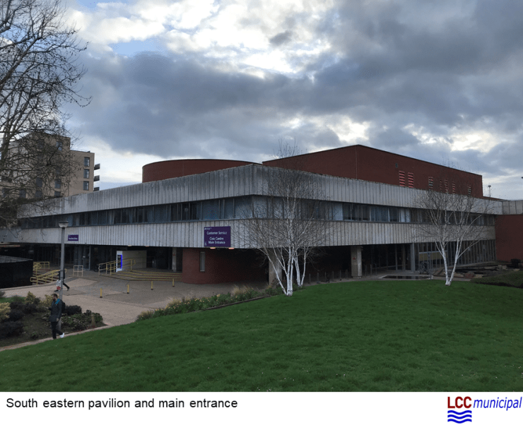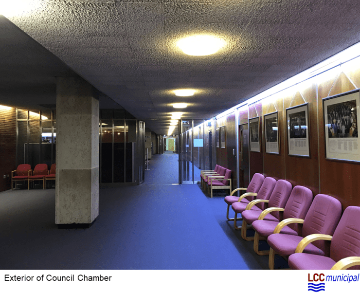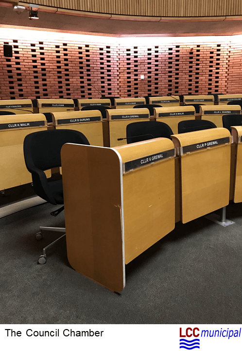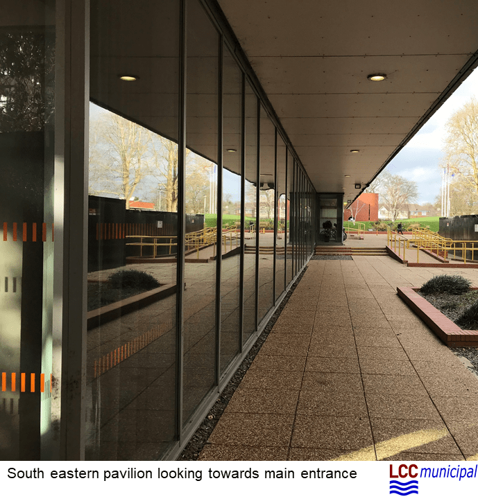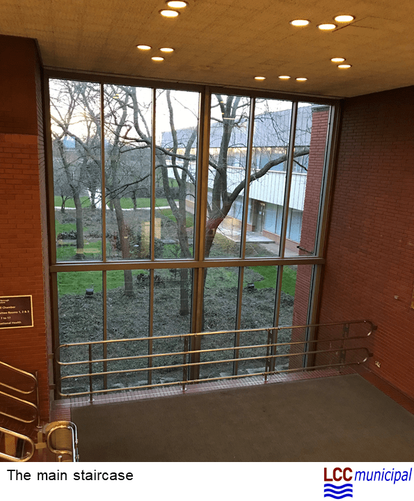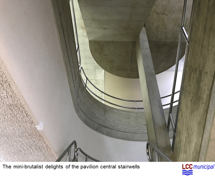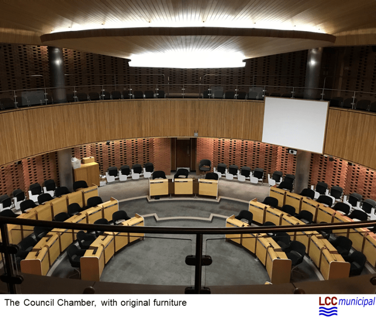 The fourth pavilion, on the south east corner of the site, was home to the public reception areas and a formal civic suite, including a distinctive circular (well, twelve-sided in fact) Council Chamber.