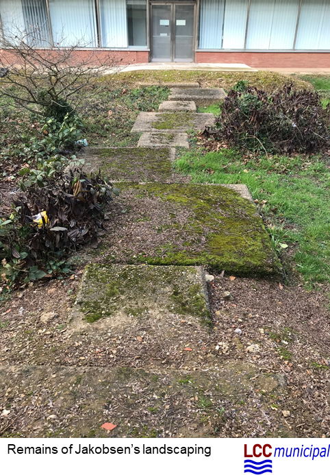 Some things haven’t necessarily lasted. The generous expanses of the open plan floors remain, but the strict principles and nuances of Bürolandschaft have not survived, such that the linear desk layout would be familiar to anyone who has worked in an open plan office of the past twenty years. Also, Jakobsen’s external landscape design has largely disappeared over the years, but their concrete paving slabs of various sizes and heights (surely a Health & Safety inspector’s nightmare) have survived in places.