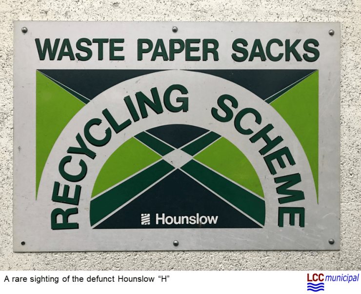 Always on the lookout for examples of old branding, I was pleased to find just one instance of the old Hounslow “H” (fun fact: this logo was introduced in 1975 to coincide with the opening of the Civic Centre)…